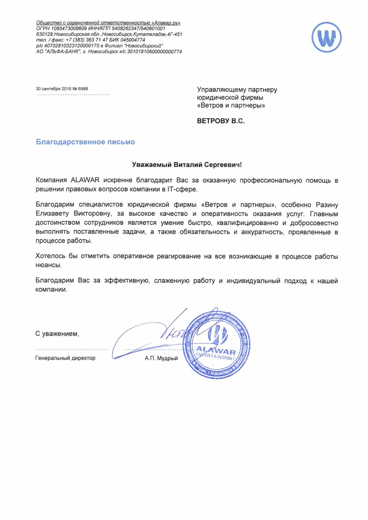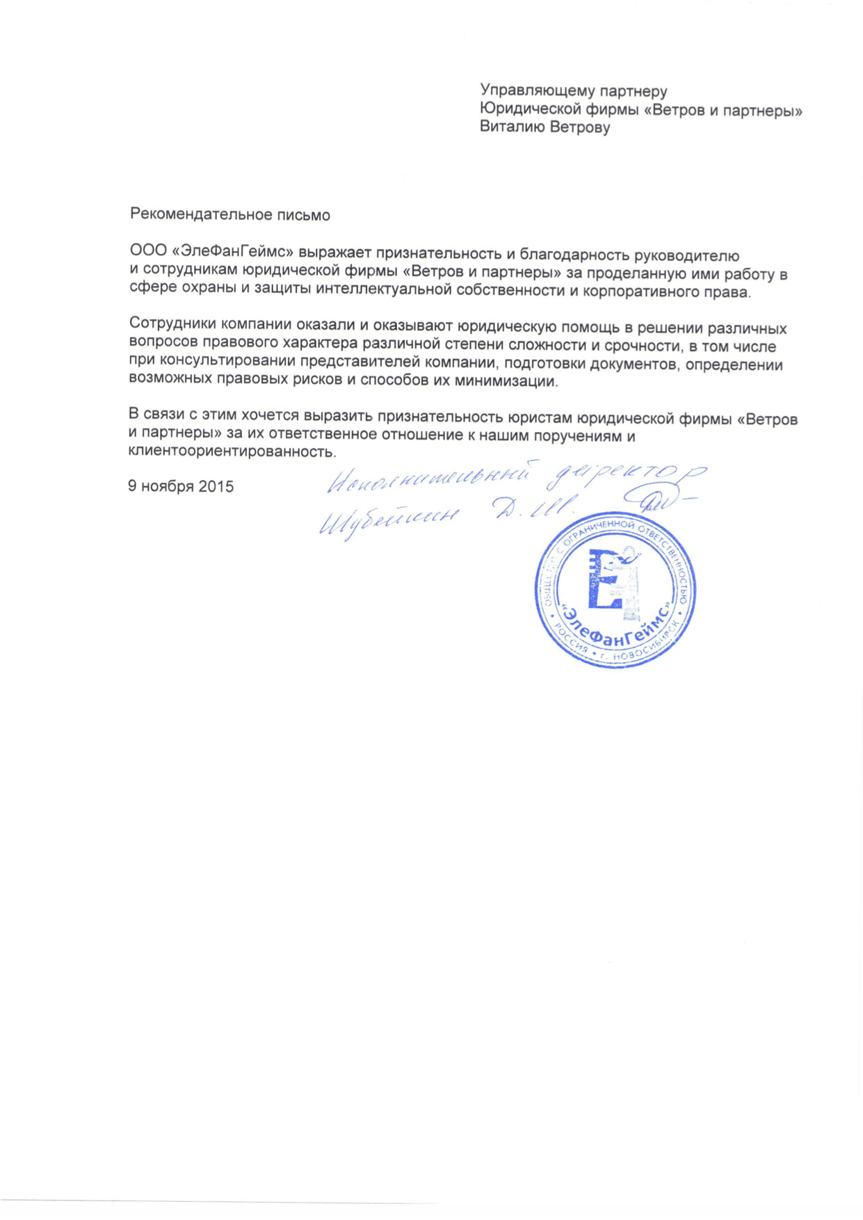 Отзывы и рекомендации о юристах юридической фирмы "Ветров и партнеры"